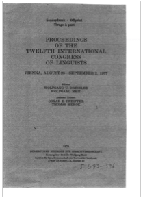 12. Internationaler Kongreß für Linguisten in Wien, 29. 8. - 2. 9. 1977. in Proceedings of the XIIth International Congress of Linguists, eds. W. U. Dressler & W. Meid, Innsbrucker Beiträge zur Sprachwissenschaft, Innsbruck 1978, 573-576.