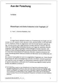 (mit Günther Todt). Linguistische Berichte 62 (1979), 1 - 24. Reprint in: Dieter Krallmann & Gerhard Stickel (eds.), Zur Theorie der Frage (Forschungsberichte des IDS 52) Tübingen: Narr Verlag, 1981, 66-84.